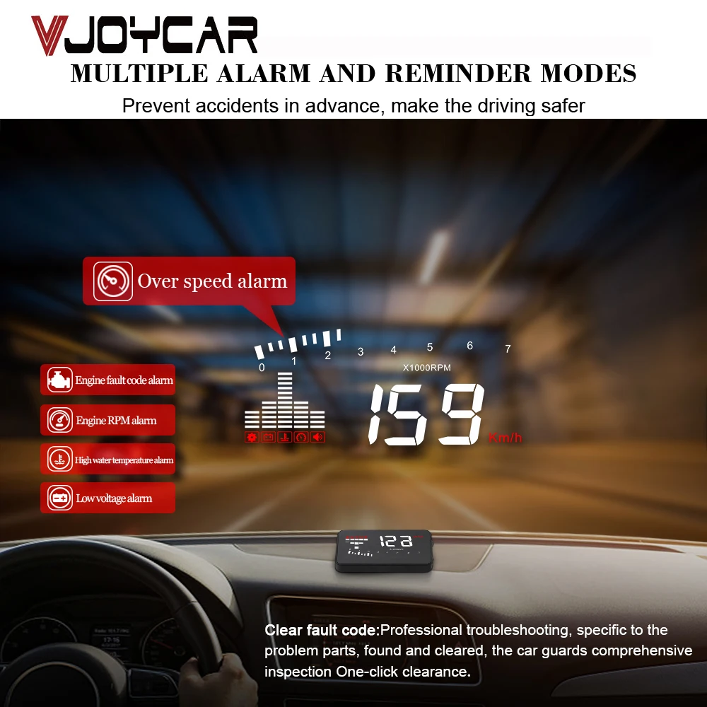 VJOYCAR A100 Car Hud OBD2 Head Up Display Digital Speedometer Projector OBD Speed Auto Voltage Alarm Diagnostic Tool A100s KM/H